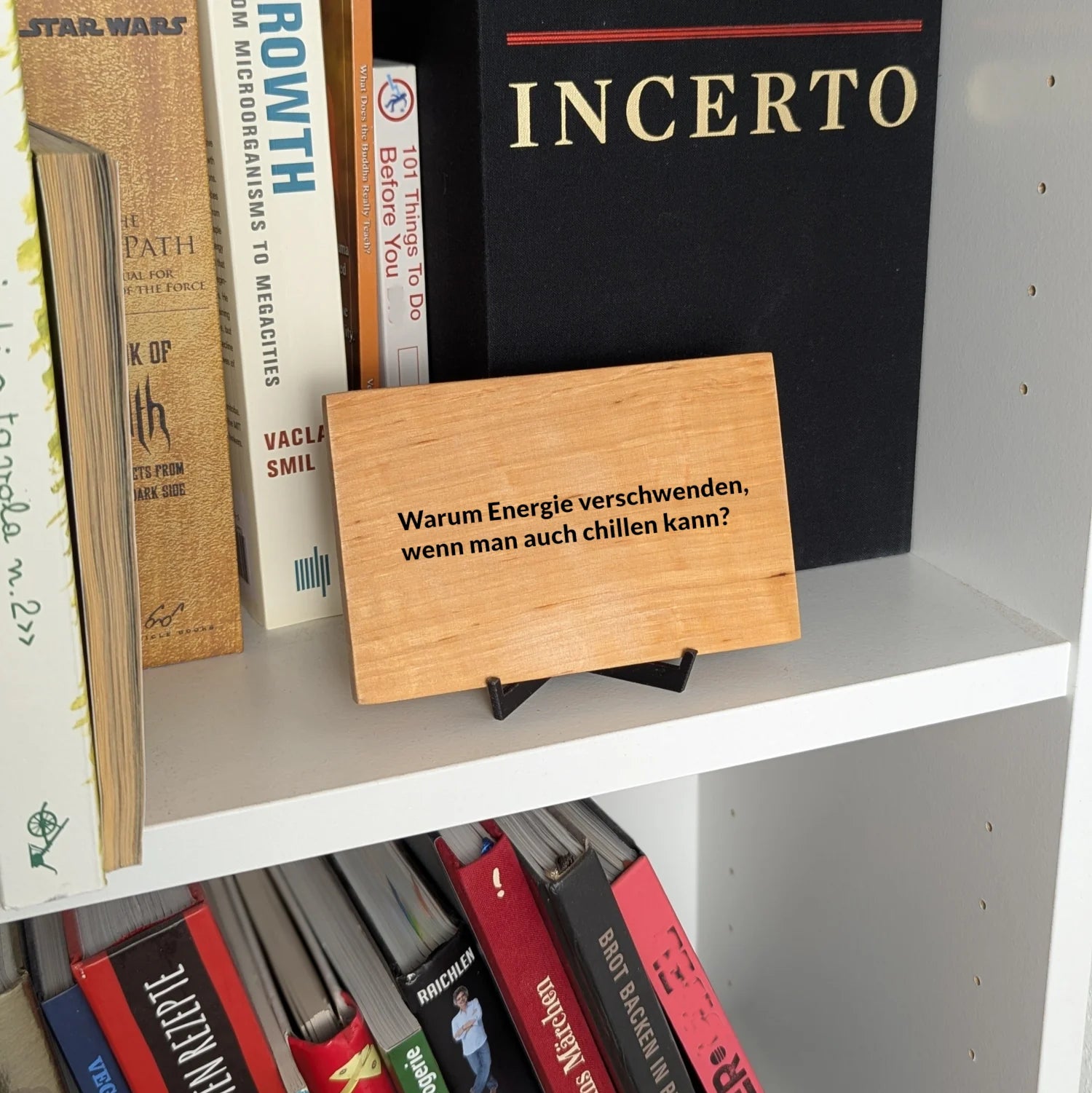 Kitschige Motivationssprüche hängen bei dir nicht an der Wand, sondern höchstens im Papierkorb? Dann ist dieses Schild genau dein Stil. Ob „Das Leben ist eine aufregende Achterbahn – du stehst noch in der Schlange“ oder dein ganz eigener bissiger Satz – wir gravieren, was du willst.